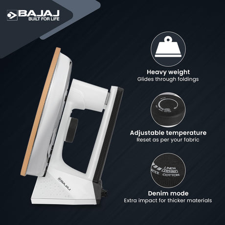 Bajaj Dx16 1100W Heavy Weight Dry Iron (White & Black)