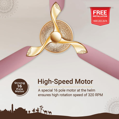 RR Signature Jaipur Mahal 1320mm Premium Ceiling Fan (Rose Gold)