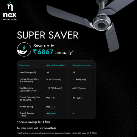NNEX By Bajaj Glyde A80 BLDC 1200mm Ceiling Fan (Steel Blue)