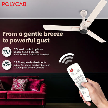 Polycab Wizzy Neo DLX 1200mm BLDC Ceiling Fan with Remote (Snow White)