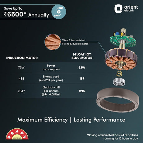 Orient Electric I-Float iOT 1200mm BLDC Ceiling Fan (Lakeside Brown)