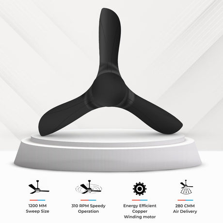 Orient Electric Aeroquiet 1230mm Premium Ceiling Fan (Matt Black)