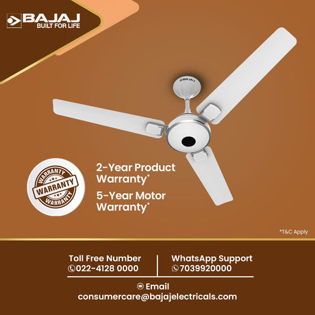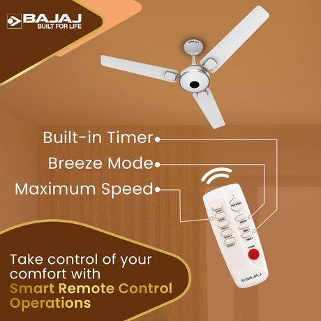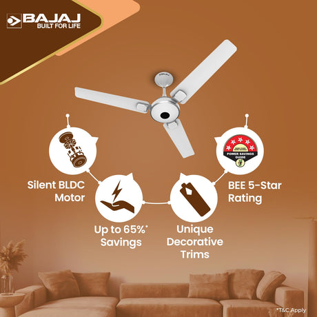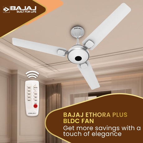 Bajaj Ethora Plus 1200mm High Speed BLDC Ceiling Fan with Remote 【White Chrome】