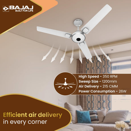 Bajaj Hurricane 1200mm Ceiling Fan Opal White