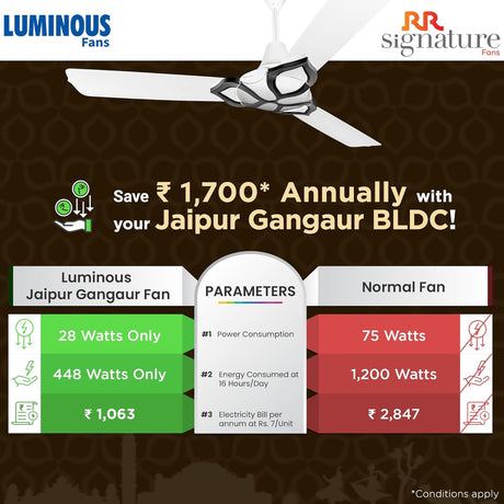 RR Signature Jaipur Gangaur BLDC 5 Star Designer Ceiling Fan With Remote (Agaria White)