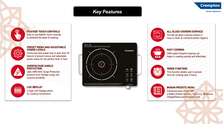 Crompton Infraserve Infrared Cooktop 2000-Watts for all type of utensil (Black)
