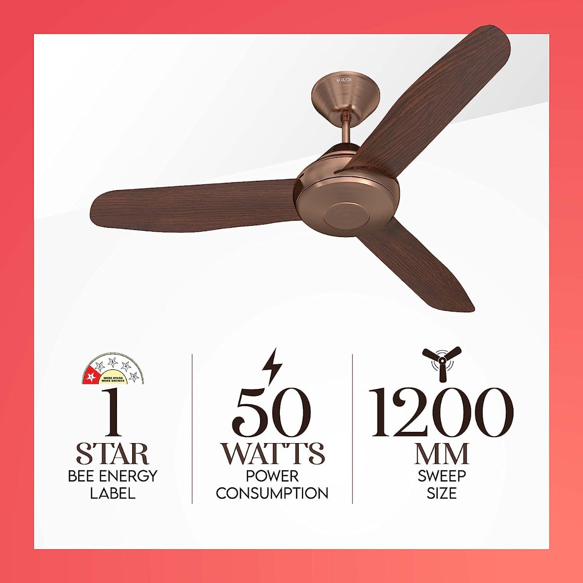 Polycab Superia Megna 1200mm Designer Ceiling Fan (Antique Copper Rosewood)