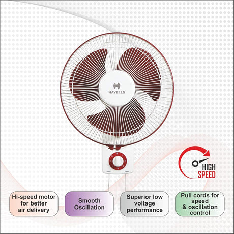 Havells Accelero 400mm High Speed Wall Fan (White Red)