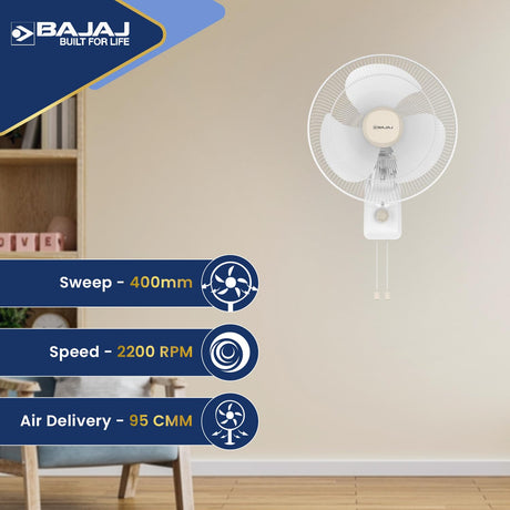 Bajaj Shield Series Robusto 400MM High Speed Wall Fan (Beige & White)